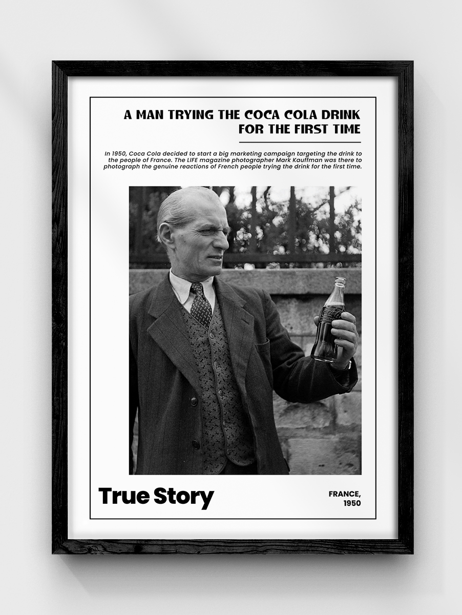 Në vitin 1950, Coca Cola vendosi të nisë një fushatë të madhe marketingu që synonte pijen tek njerëzit e Francës. Fotografi i revistës LIFE, Mark Kauffman, realizoi këtë fotografi dhe shumë të tjera. Viti: 1950 / Paris.
