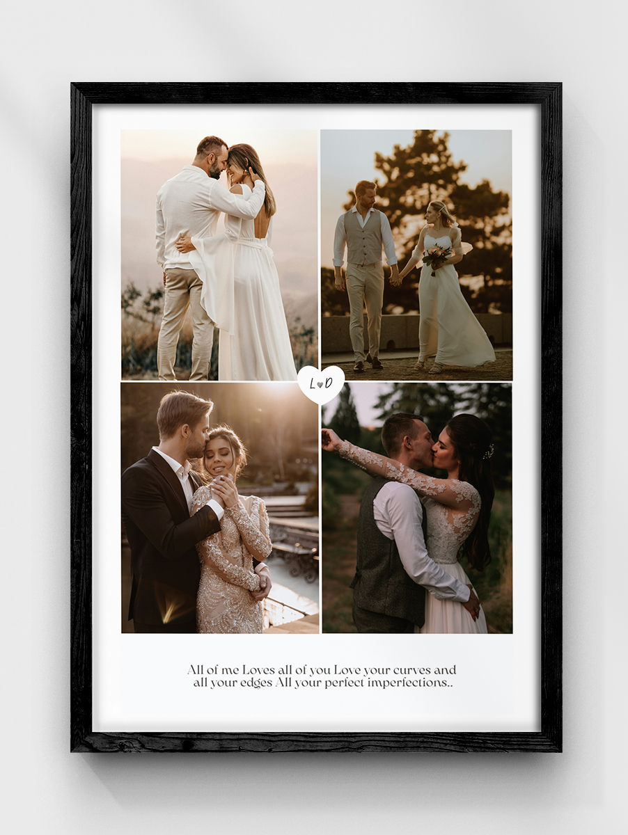 Kornizë e personalizuar me fotografinë tuaj dhe tekst. Nëse keni ndonjë thënje të veqantë ju lutemi ti shënoni më poshtë në tabelë para se të porositni. Ju gjithashtu duhet që ti ngarkoni (upload) fotografitë që dëshironi ti keni në poster sikurse jeni duke e parë shembullin e produktit aktual.