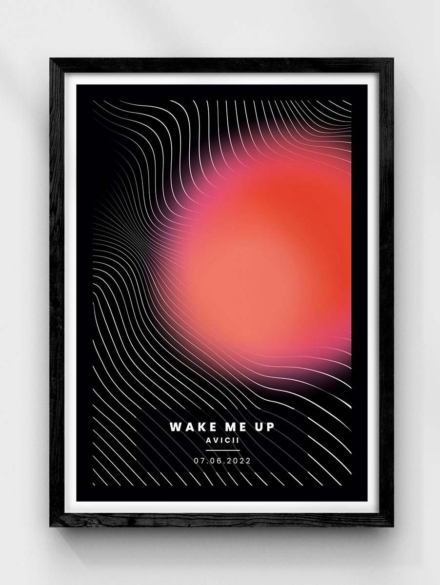 Falë AI (inteligjencës artificiale), tani mund të porosisni një poster të personalizuar me abstraksionin e valës së tingujve të këngës tuaj të preferuar. Nëse ju dhe partneri juaj keni ndonjë këngë të preferuar, atëherë platforma jonë AI do të gjenerojë linjat unike të valës nga ajo këngë dhe do të krijojë këtë poster të mrekullueshëm për ju. Mund të shtoni datën, emrin ose ndonjë citat pranë emrit të këngës.